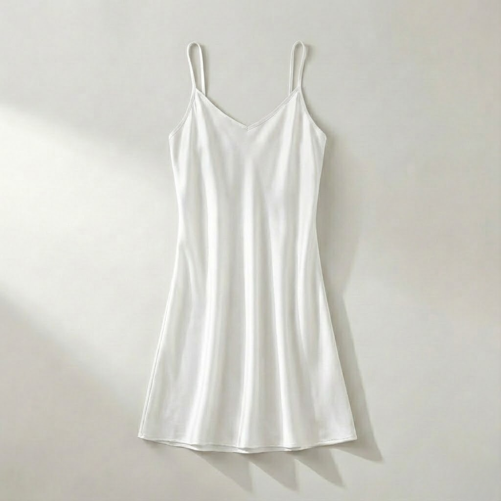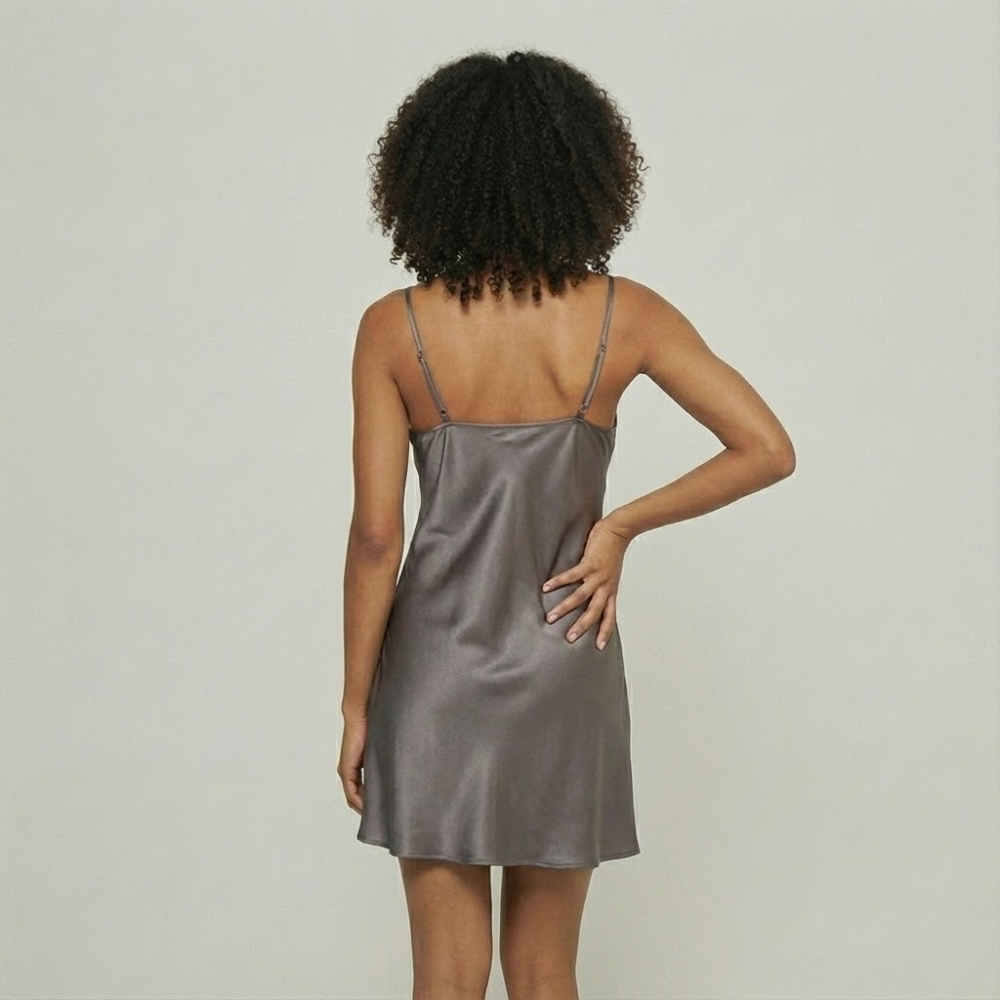 Com modelagem fluida e delicada, a camisola acompanha suavemente as linhas do corpo sem marcar, valorizando a silhueta com elegância e naturalidade.