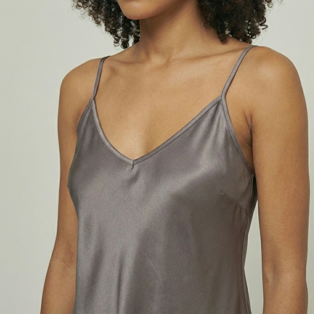 Nossa camisola de seda é confeccionada com seda de amoreira, proporcionando um toque extremamente suave, leve e fresco sobre a pele. Naturalmente respirável e hipoalergênica, a seda reduz o atrito, ajuda a preservar a hidratação da pele e oferece conforto absoluto para noites mais agradáveis e sofisticadas.