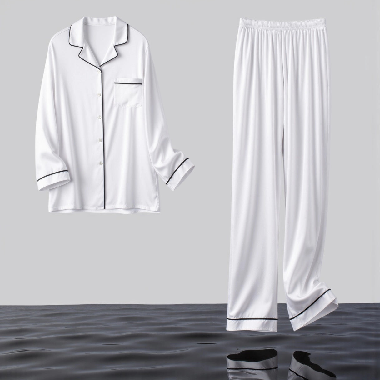 Experimente o máximo de conforto e sofisticação com o nosso Pijama Longo de Seda Premium, perfeito para noites de descanso ou momentos de relaxamento em casa. Feito com 95% seda de amoreira (Mulberry Silk), 19 Momme, e 5% elastano, oferece uma sensação suave e luxuosa sobre a pele, com um toque extra de elasticidade e conforto.